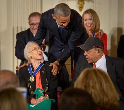 | Katherine Johnson receiving the Presidential Medal of Freedom. Image via the White House |