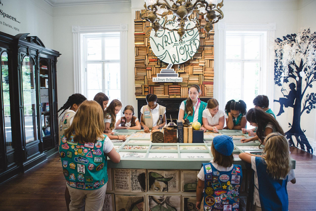 Since its opening more than two years ago, tens of thousands of Girl Scouts and visitors from around the world have enjoyed Girls Writing the World: A Library, Reimagined, an installation at the Juliette Gordon Low Birthplace in Savannah, Georgia. This week, the exhibition was awarded a National Recognition from the American Alliance of Museums for “Excellence in Exhibition” for “Creating Big Change in a Small Package.” This tremendous honor places Girl Scouts of the USA in the company of the National Museum of African American History and Culture and the Getty, among other recipients this year.