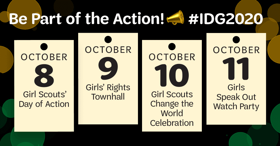 At Girl Scouts, we are proud to celebrate the International Day of the Girl by introducing ten of the most amazing world changers in our Movement—the 2020 National Gold Award Girl Scouts. Keep it locked on our social media platforms for this big announcement and more! Here’s everything you, your troop, and your girls need to know to get in on all things International Day of the Girl 2020!