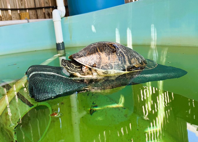 Informed by her research, Julianne got to work on practical solutions. She designed three firehose hammocks for small mammals. She also designed and built four floating PVC platforms for shorebirds and turtles.