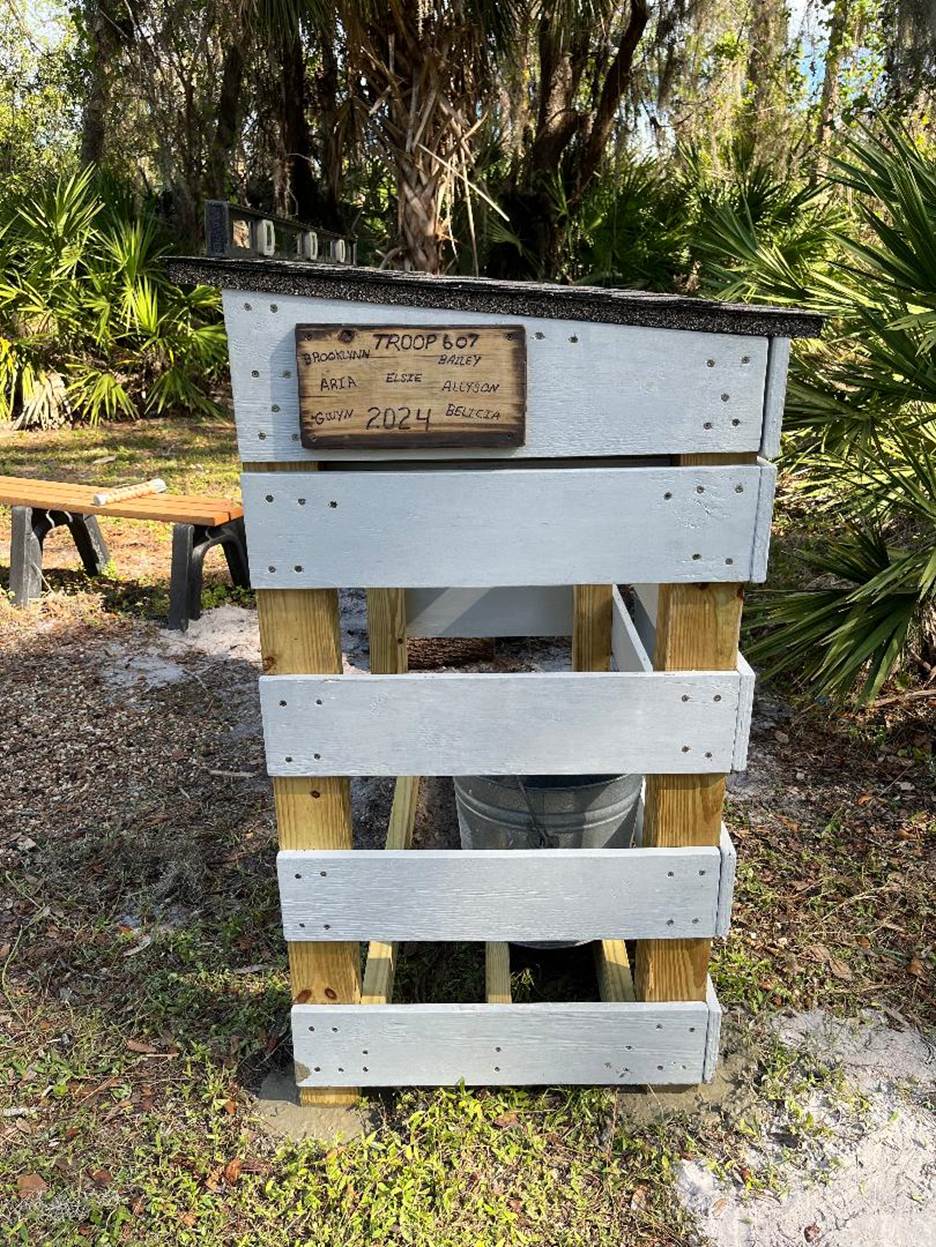 The new woodshed will enable future campers to learn fire building skills and fire safety. The girls repurposed leftover wood from a previous project they did, cutting and assembling materials to fit their design specifications. They also installed shingles for the roof and reinforced the structure using tools and techniques they had learned through their experience. Despite challenges—including sanding treated wood to ensure a smooth, splinter-free finish and delays caused by Hurricanes Milton and Helene—the girls demonstrated resilience and adaptability.