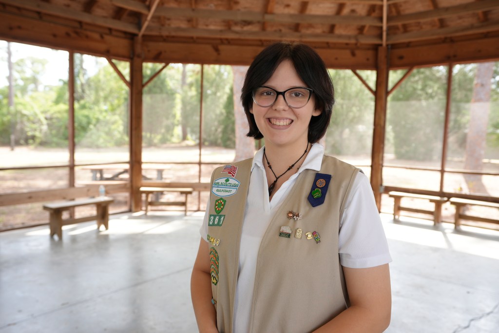 Gulfcoast Girl Scout Faith Chaney recognized a need in her community for menstrual health advocacy. She dedicated over 80 hours to her project, “Periods Aren’t Taboo,” to help positively impact the lives of girls and women living and working in her community.